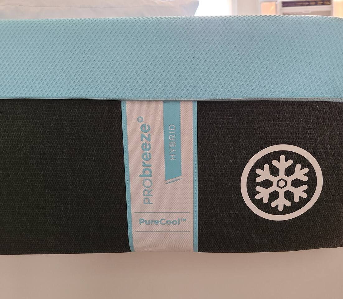 Brand new mattress, see pictures! Also, bedroom bed frame has been fully reinforced, we've secured with screws all supporting wood panels to make sure they stay in place and added two large beams length wise with an additional 4 beams supporting the central area of the bed.